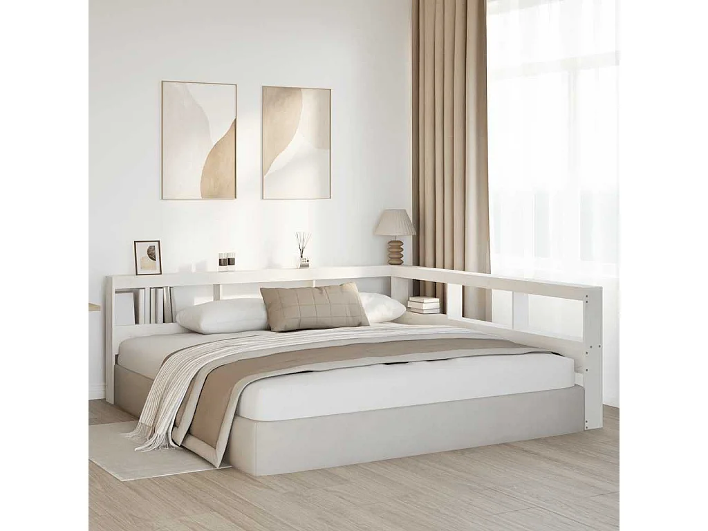 Mueble cabecero | Cabecero | Cabezal de cama librería en forma de L madera maciza pino blanco 200cm