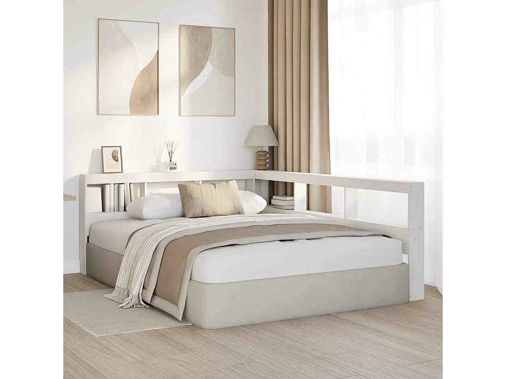 Mueble cabecero | Cabecero | Cabezal de cama librería en forma L madera maciza pino blanco 135 cm