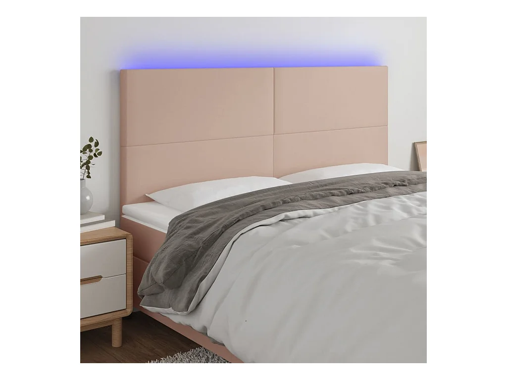 Mueble cabecero | Cabecero | Cabezal de cama luces LED cuero sintético capuchino 200x5x118/128cm