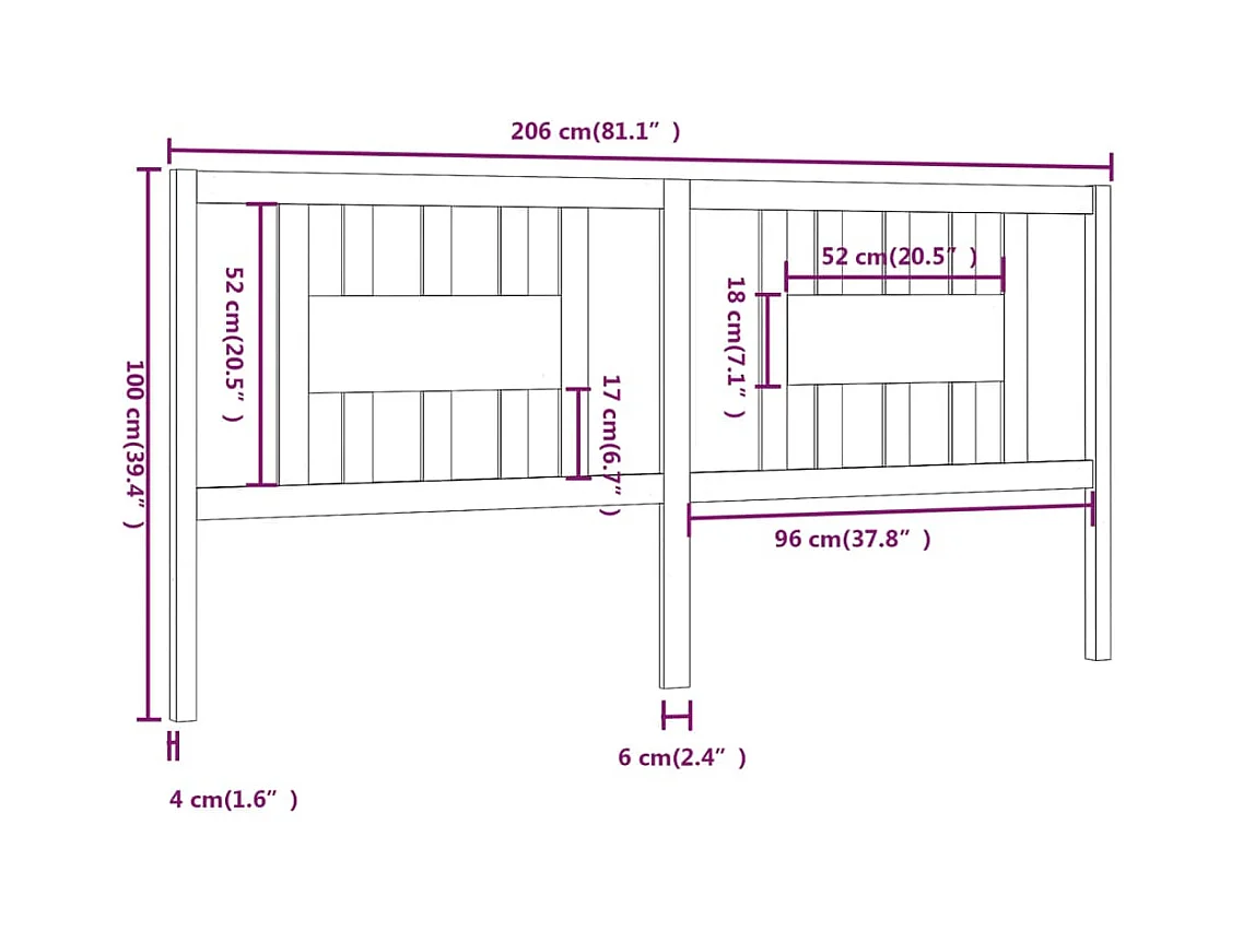 Cabecero de Cama | Cabezal de cama | Mueble de cabecero madera maciza de pino blanco 206x4x100 cm