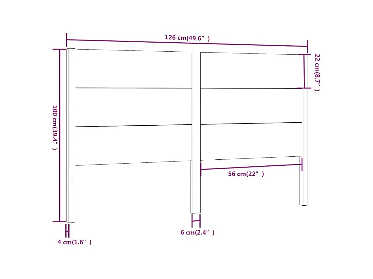 Cabecero de Cama | Cabezal de cama | Mueble de cabecero madera maciza de pino negro 126x4x100 cm