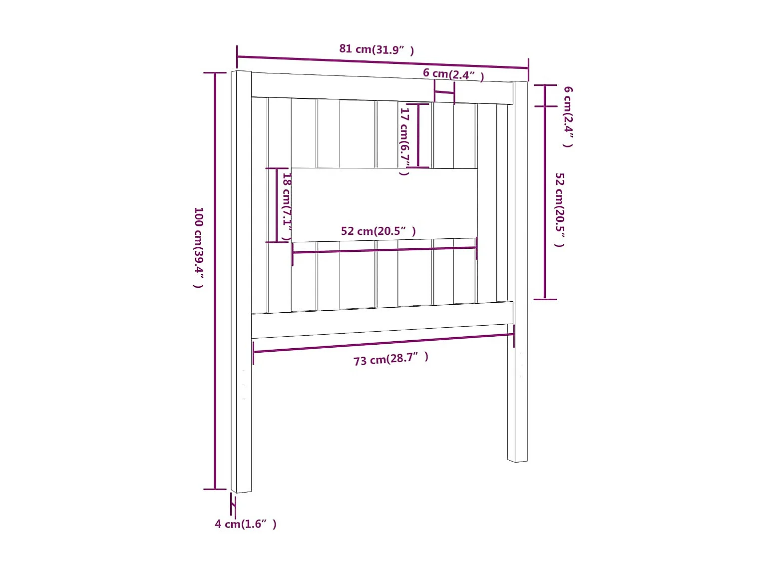 Cabecero de Cama | Cabezal de cama | Mueble de cabecero madera maciza de pino negro 81x4x100 cm