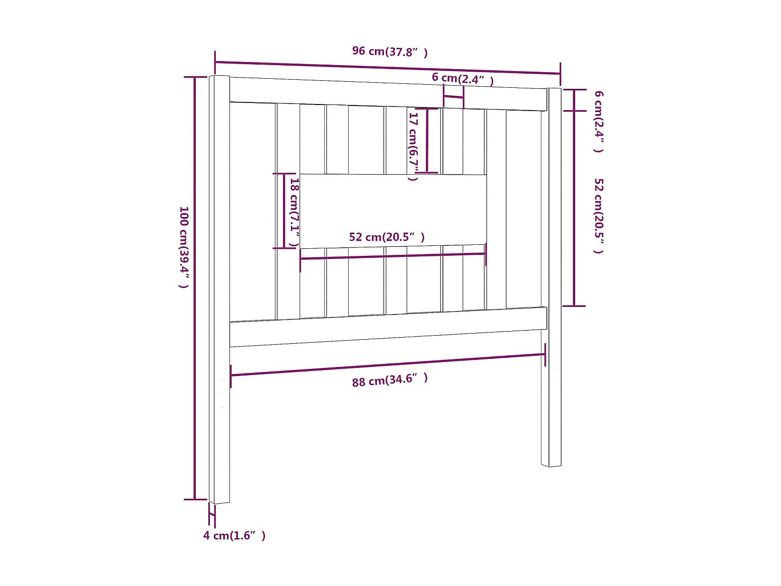 Cabecero de Cama | Cabezal de cama | Mueble de cabecero madera maciza de pino negro 96x4x104 cm