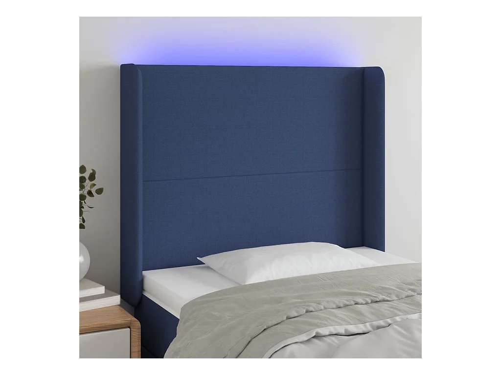 Mueble cabecero | Cabezal de cama | Cabecero con LED de tela azul 103x16x118/128 cm