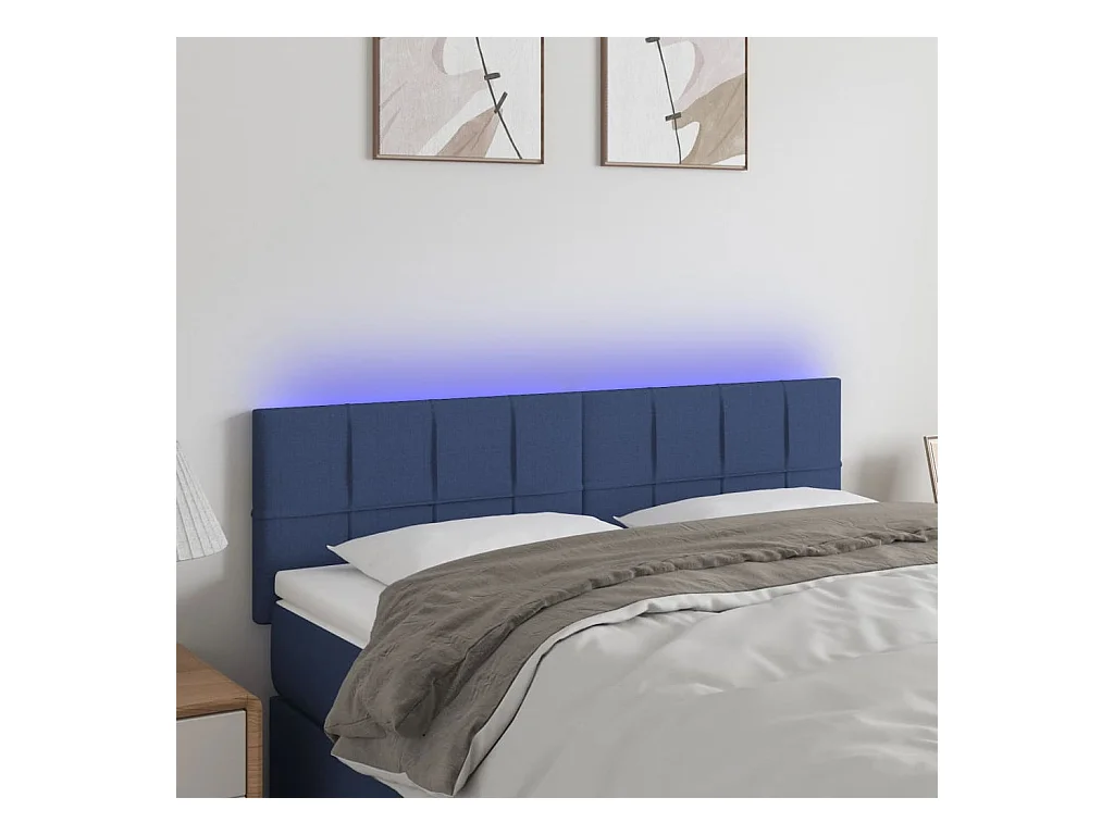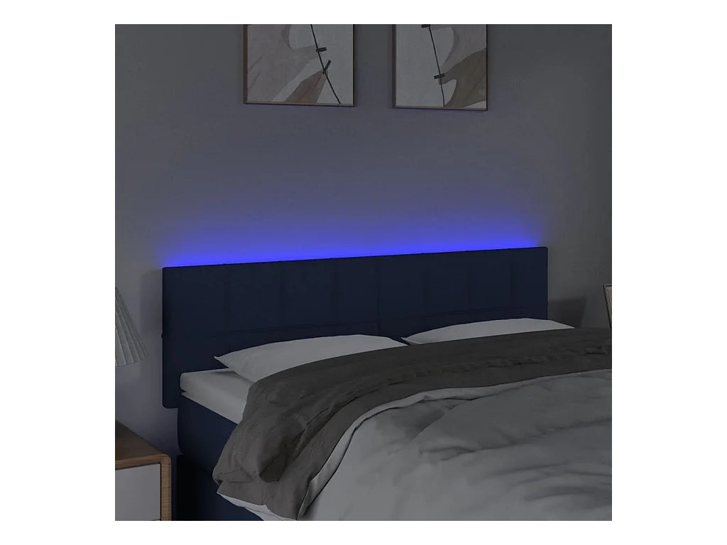 Mueble cabecero | Cabezal de cama | Cabecero con LED de tela azul 144x5x78/88 cm