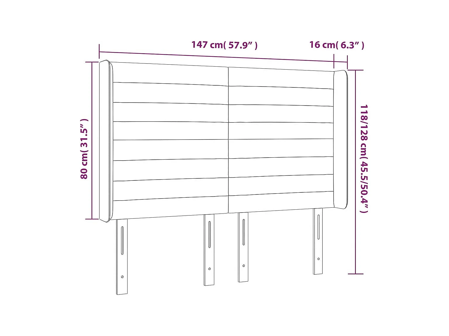 Cabecero | Cabezal de Cama | Mueble cabecero con orejas de tela azul 147x16x118/128 cm