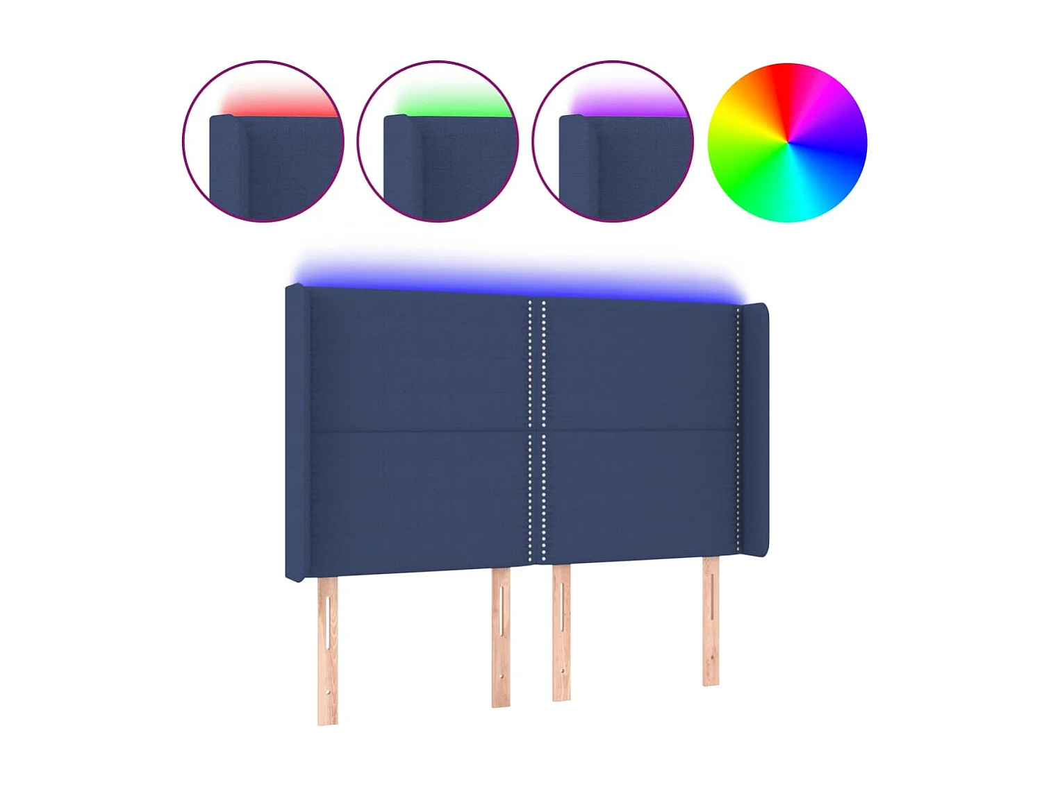 Mueble cabecero | Cabezal de cama | Cabecero con LED de tela azul 147x16x118/128 cm