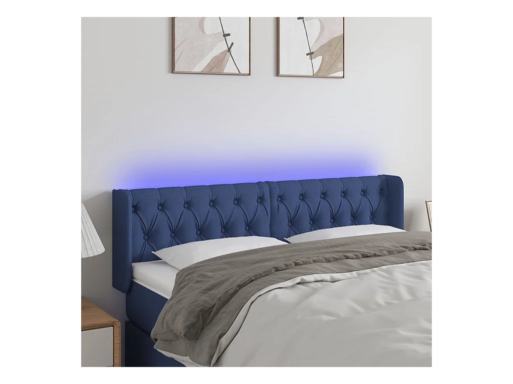 Mueble cabecero | Cabezal de cama | Cabecero con LED de tela azul 147x16x78/88 cm