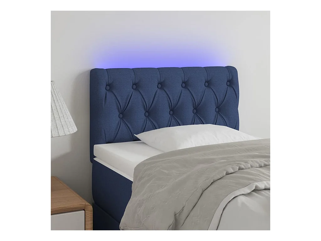 Mueble cabecero | Cabezal de cama | Cabecero con LED de tela azul 90x7x78/88 cm