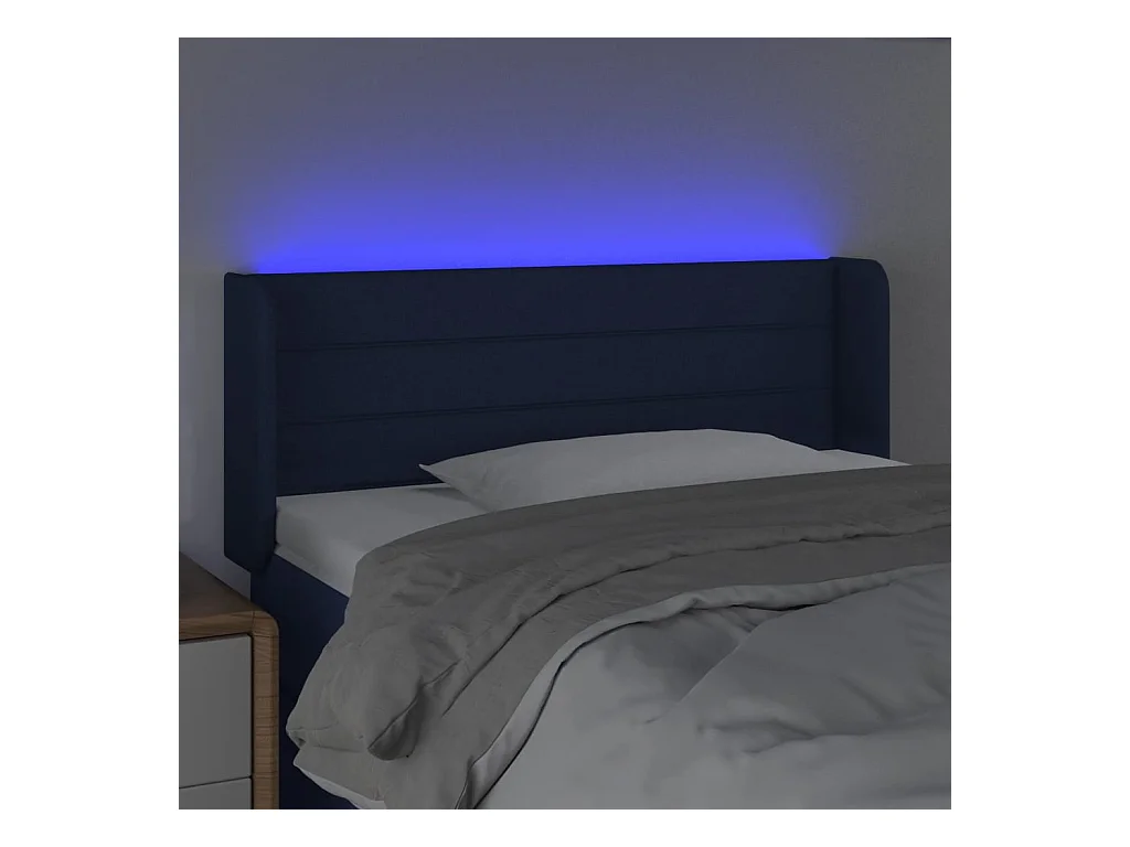 Mueble cabecero | Cabezal de cama | Cabecero con LED de tela azul 93x16x78/88 cm