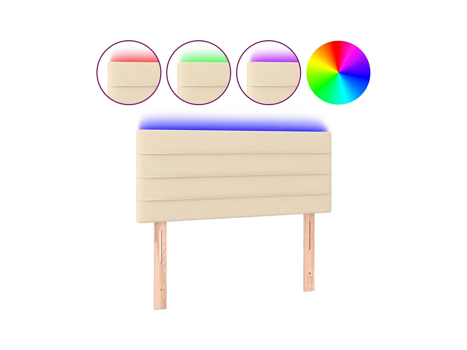 Mueble cabecero | Cabezal de cama | Cabecero con LED de tela color crema 100x7x78/88 cm
