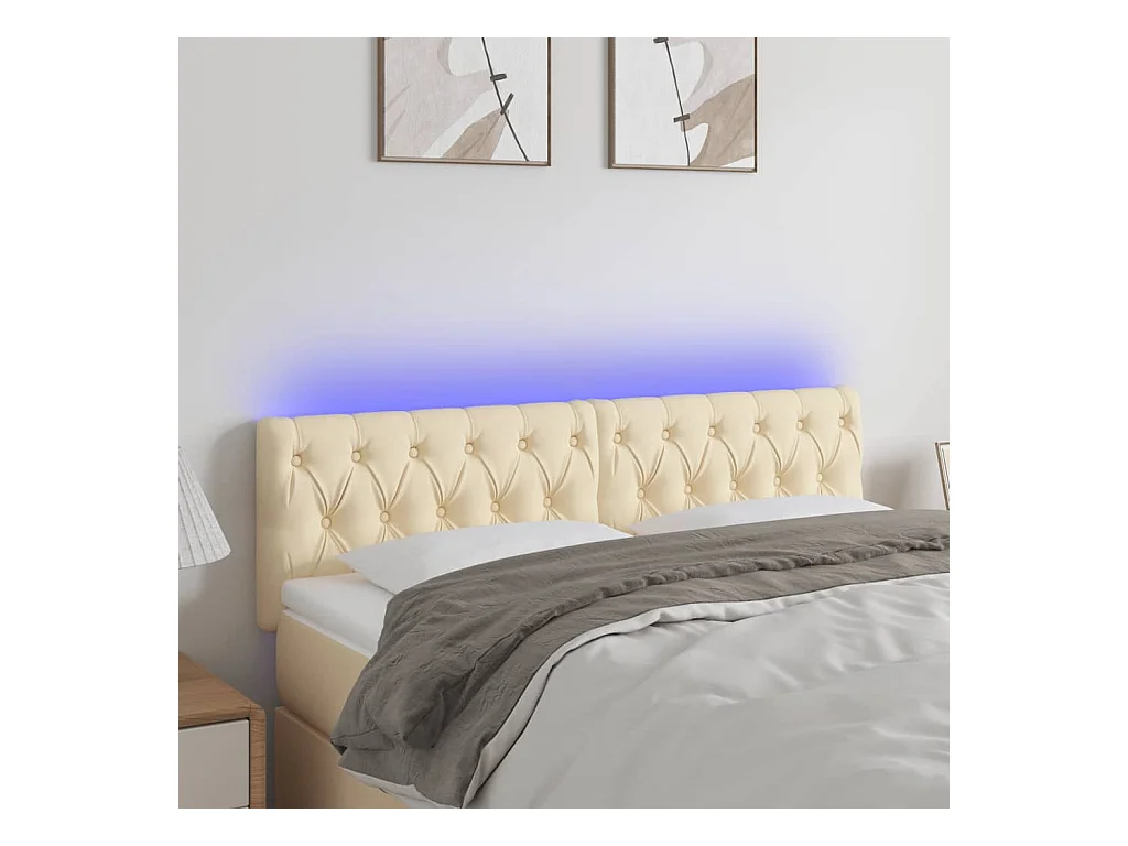 Cabecero | Cabezal de Cama | Mueble cabecero con LED cuero sintético color crema 144x5x78/88 cm