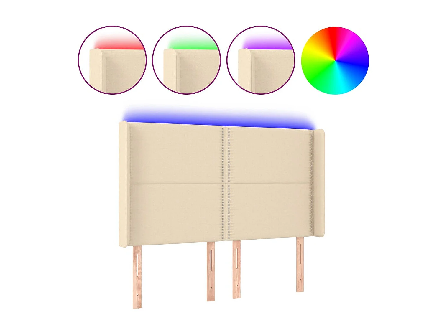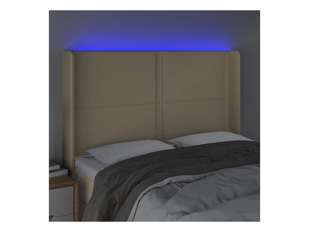 Mueble cabecero | Cabezal de cama | Cabecero con LED de tela color crema 147x16x118/128 cm
