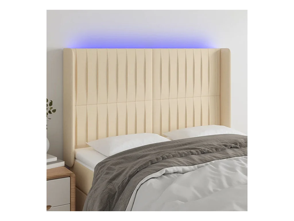 Mueble cabecero | Cabezal de cama | Cabecero con LED de tela color crema 147x16x118/128 cm