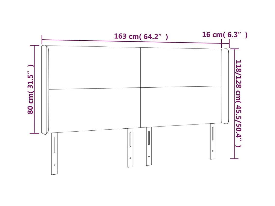 Cabecero | Cabezal de Cama | Mueble cabecero con orejas de tela color crema 163x23x118/128 cm