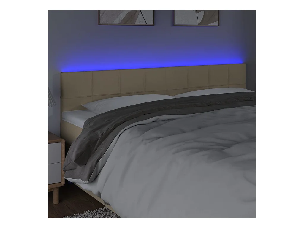 Mueble cabecero | Cabezal de cama | Cabecero con LED de tela color crema 200x5x78/88 cm