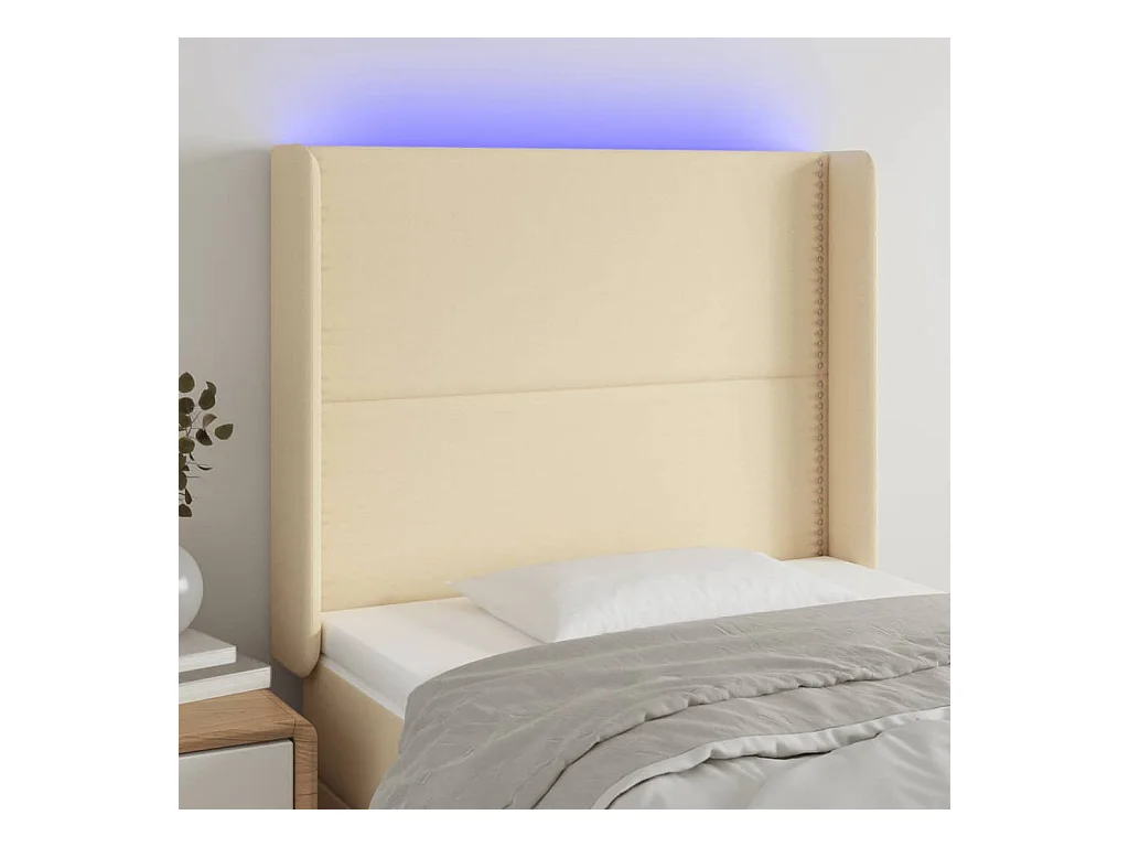 Mueble cabecero | Cabezal de cama | Cabecero con LED de tela color crema 93x16x118/128 cm
