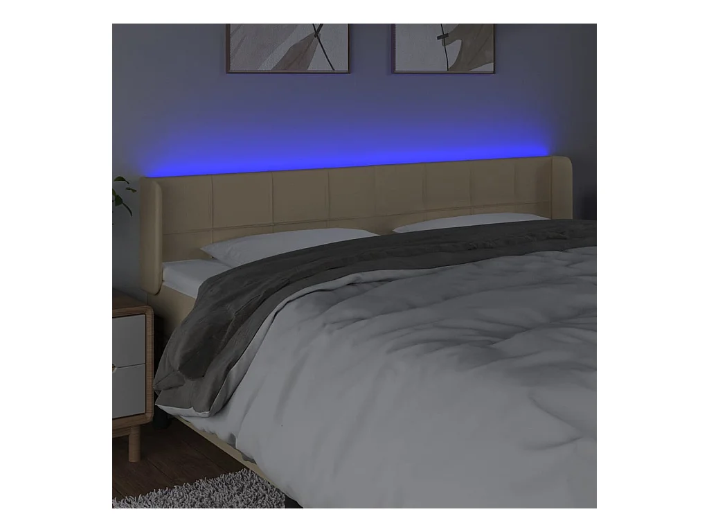Mueble cabecero | Cabezal de cama | Cabecero con LED de tela crema 183x16x78/88 cm
