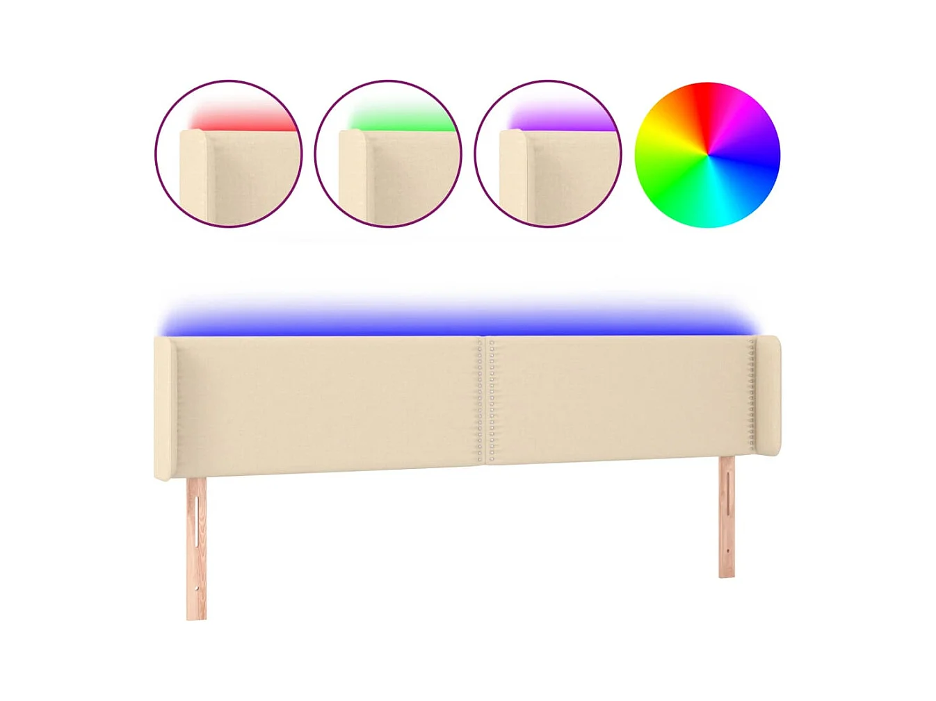 Mueble cabecero | Cabezal de cama | Cabecero con LED de tela crema 203x16x78/88 cm