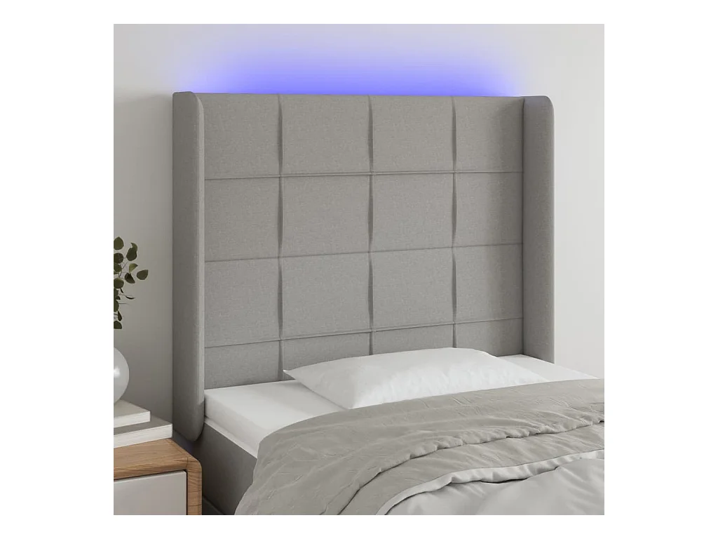 Mueble cabecero | Cabezal de cama | Cabecero con LED de tela gris claro 103x16x118/128 cm