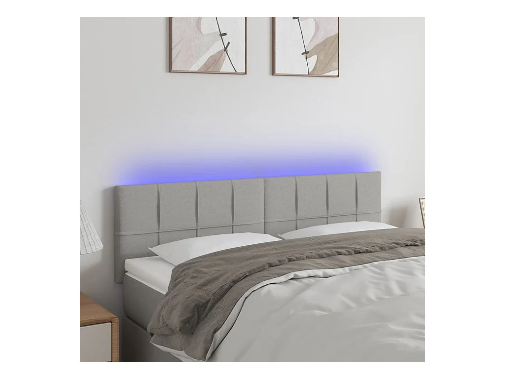 Mueble cabecero | Cabezal de cama | Cabecero con LED de tela gris claro 144x5x78/88 cm
