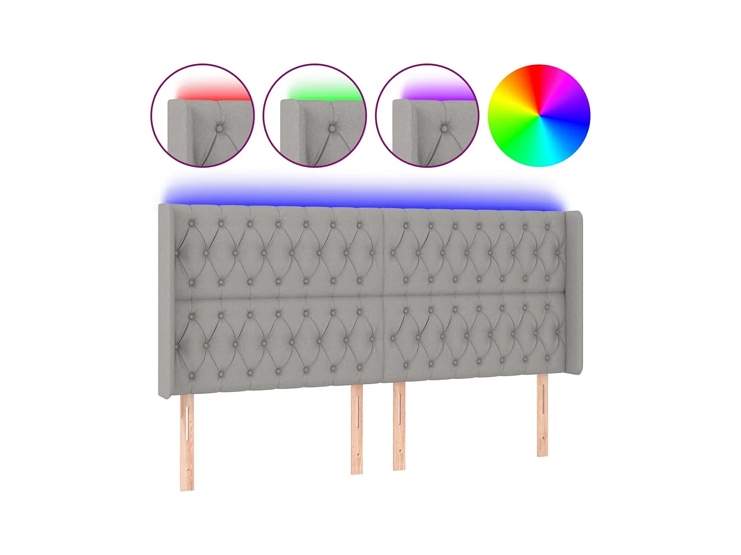 Mueble cabecero | Cabezal de cama | Cabecero con LED de tela gris claro 183x16x118/128 cm