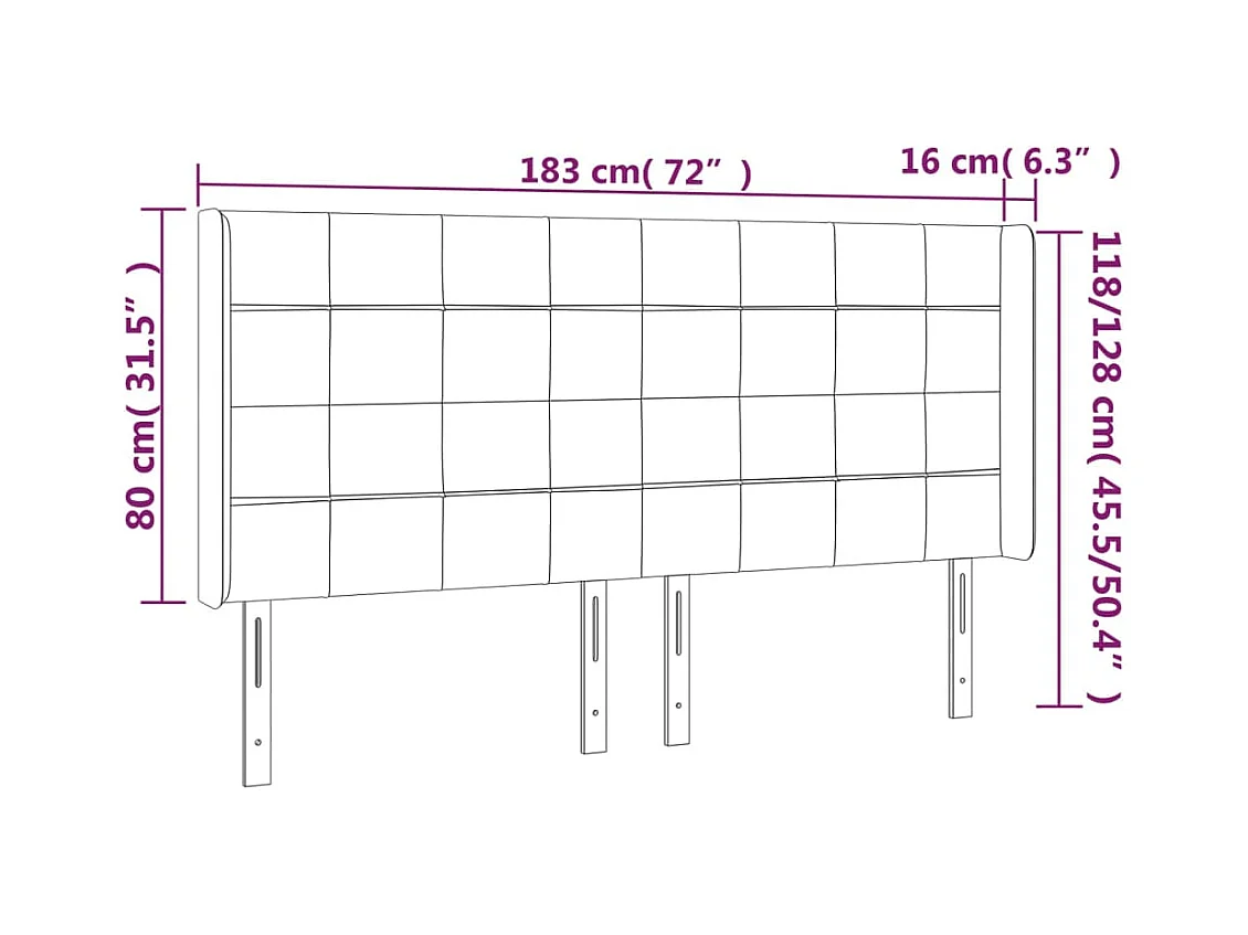 Cabecero | Cabezal de Cama | Mueble cabecero con orejas de tela gris oscuro 183x16x118/128 cm