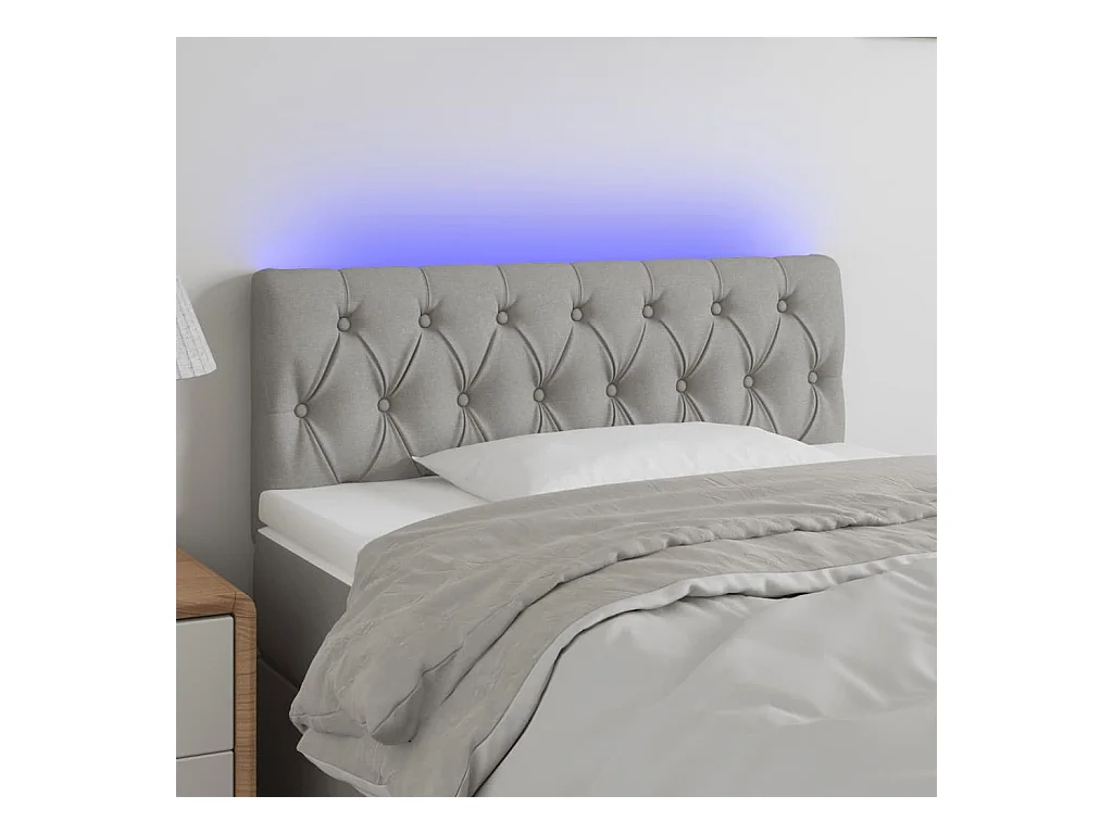 Mueble cabecero | Cabezal de cama | Cabecero con LED de tela gris claro 90x7x78/88 cm