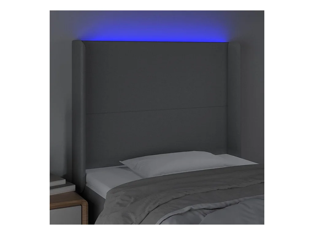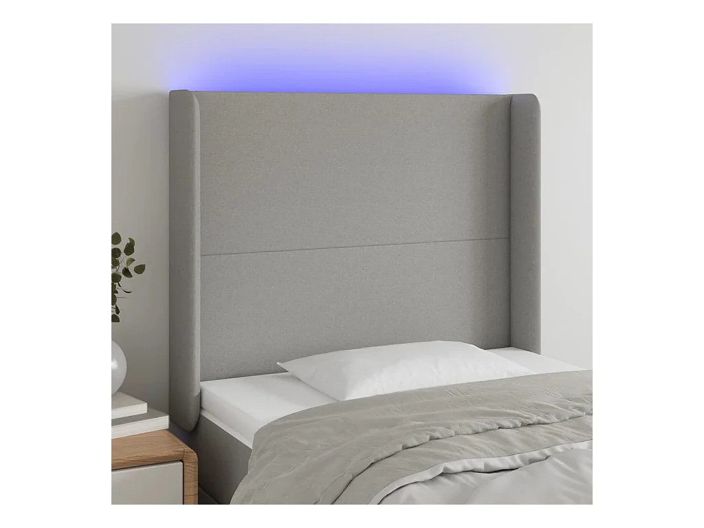 Mueble cabecero | Cabezal de cama | Cabecero con LED de tela gris claro 93x16x118/128 cm