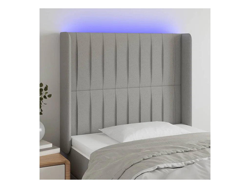 Mueble cabecero | Cabezal de cama | Cabecero con LED de tela gris claro 93x16x118/128 cm