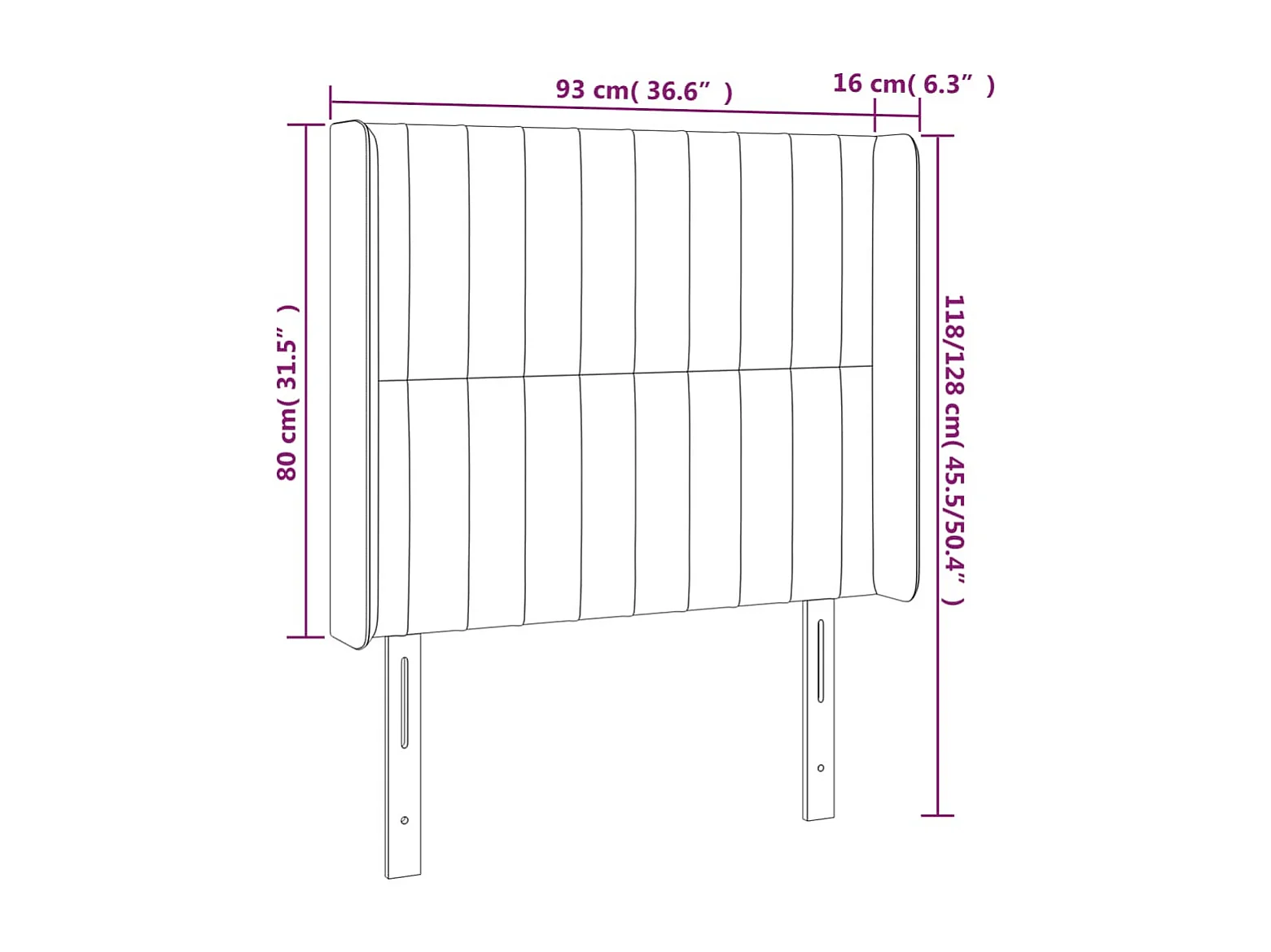 Cabecero | Cabezal de Cama | Mueble cabecero con orejas de tela gris oscuro 93x16x118/128 cm