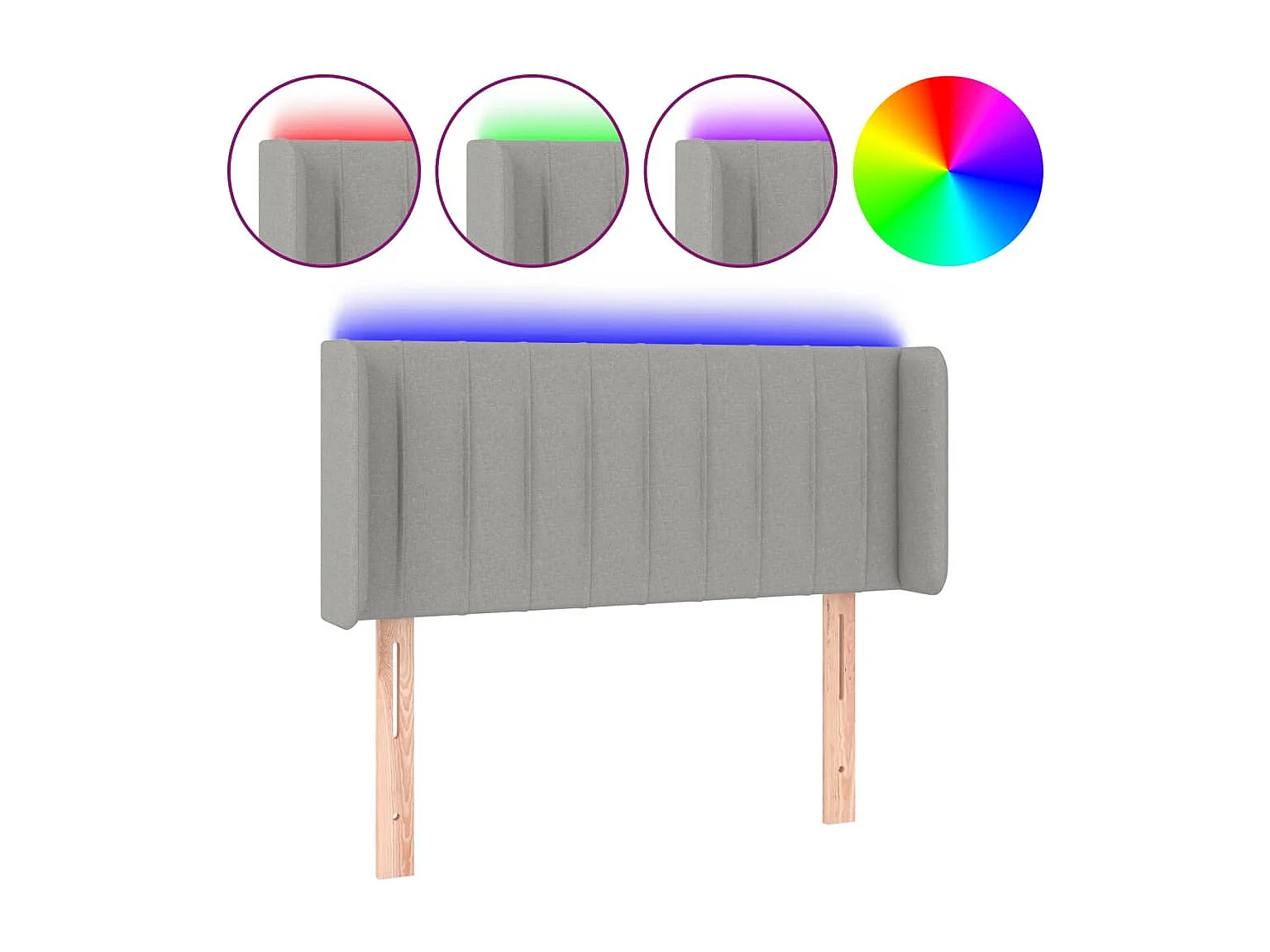 Mueble cabecero | Cabezal de cama | Cabecero con LED de tela gris claro 93x16x78/88 cm