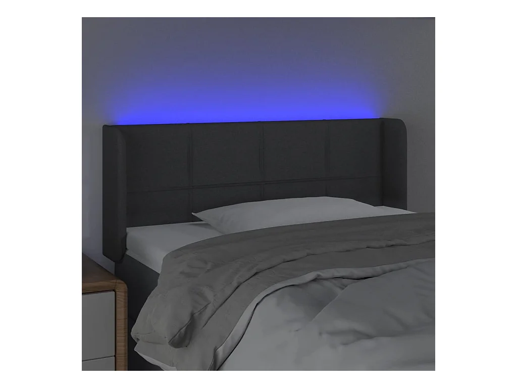 Mueble cabecero | Cabezal de cama | Cabecero con LED de tela gris oscuro 103x16x78/88 cm
