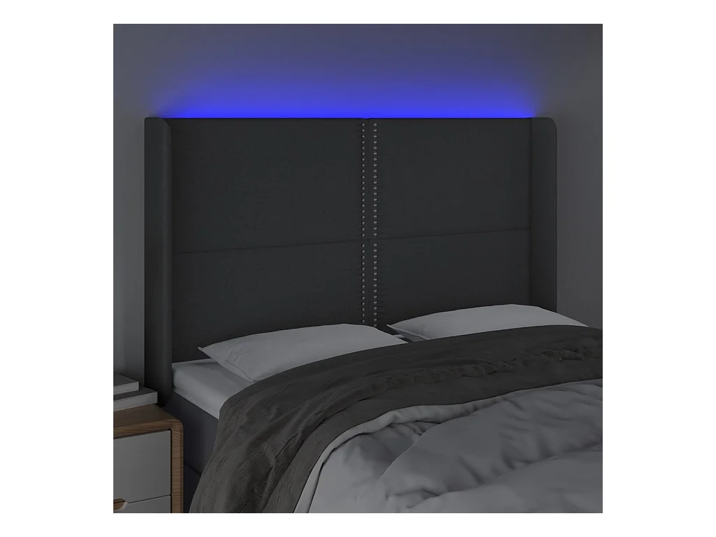 Mueble cabecero | Cabezal de cama | Cabecero con LED de tela gris oscuro 147x16x118/128 cm
