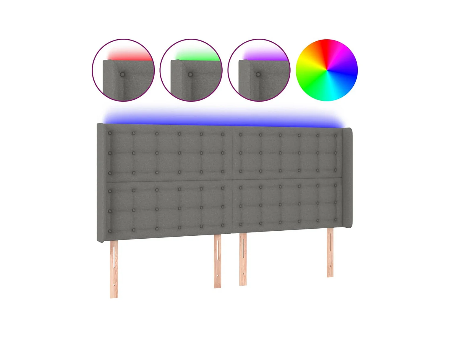 Mueble cabecero | Cabezal de cama | Cabecero con LED de tela gris oscuro 183x16x118/128 cm