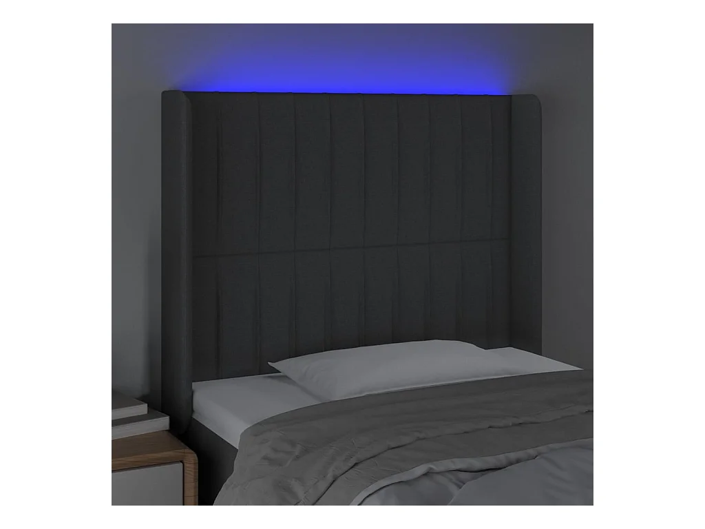 Mueble cabecero | Cabezal de cama | Cabecero con LED de tela gris oscuro 83x16x118/128 cm