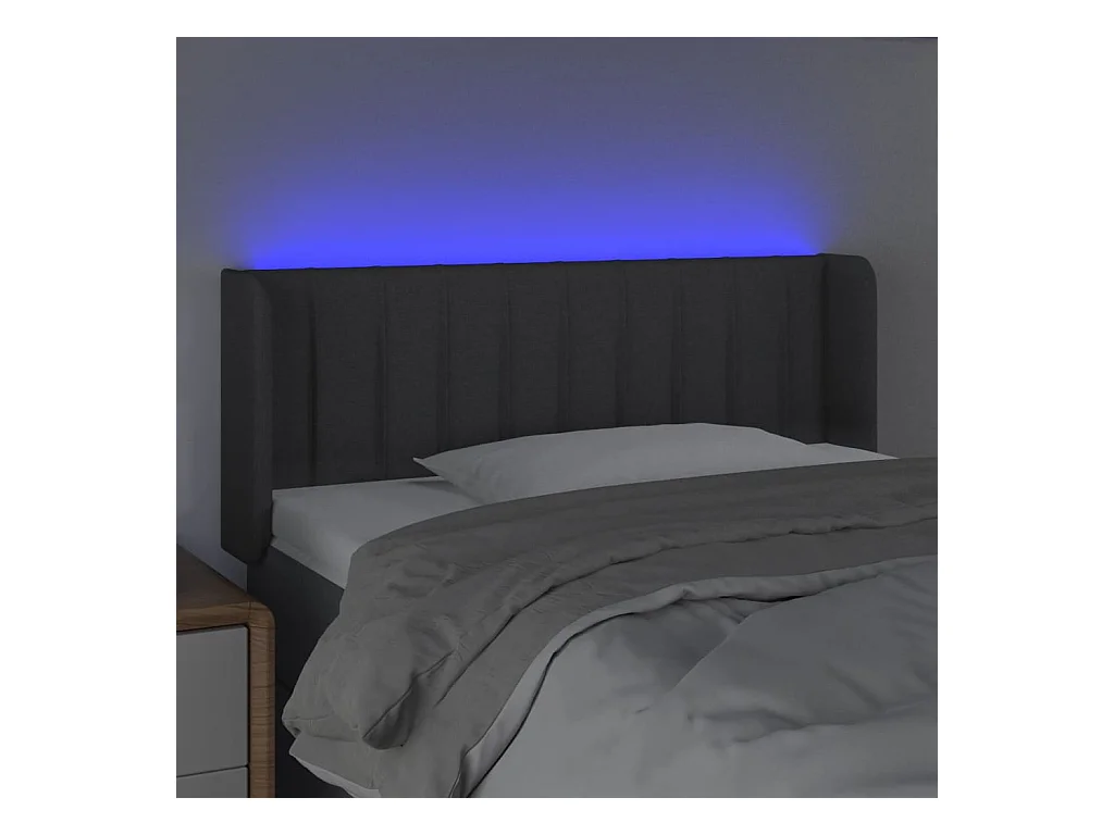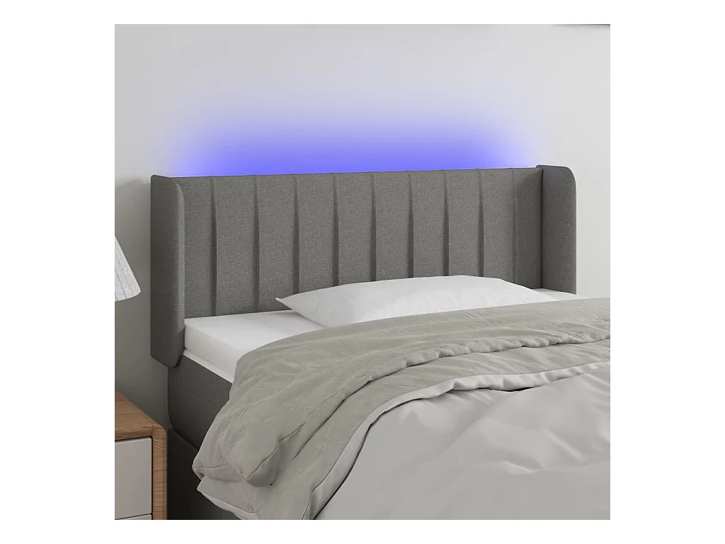 Mueble cabecero | Cabezal de cama | Cabecero con LED de tela gris oscuro 83x16x78/88 cm