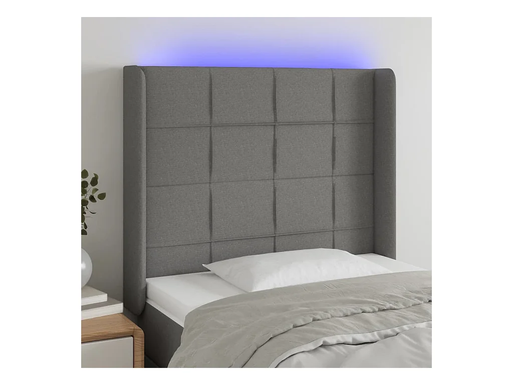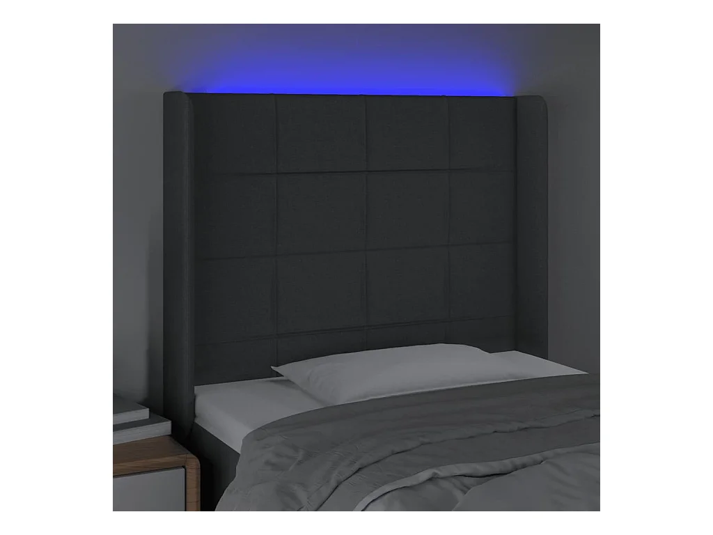 Mueble cabecero | Cabezal de cama | Cabecero con LED de tela gris oscuro 93x16x118/128 cm