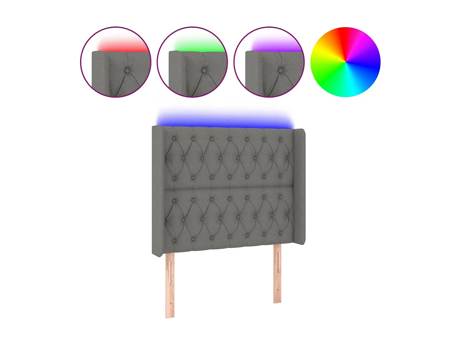 Mueble cabecero | Cabezal de cama | Cabecero con LED de tela gris oscuro103x16x118/128 cm