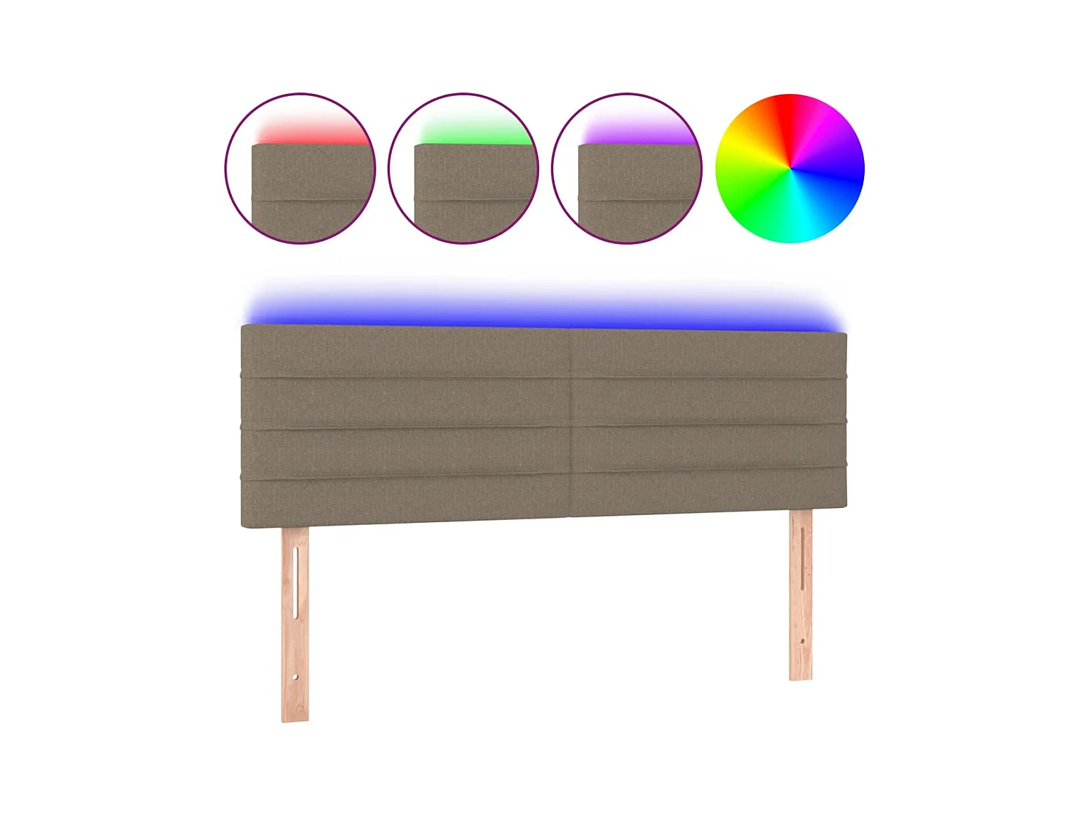 Mueble cabecero | Cabezal de cama | Cabecero con LED de tela gris taupe 144x7x78/88 cm