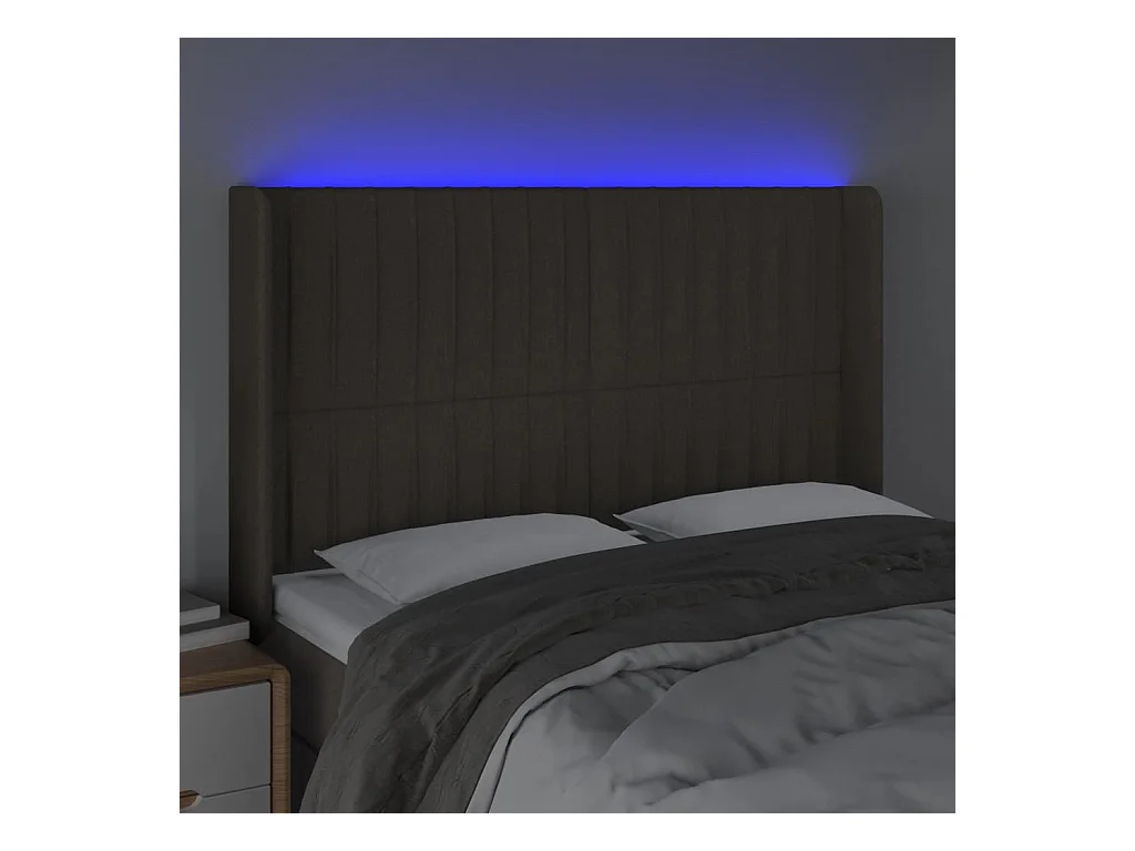 Mueble cabecero | Cabezal de cama | Cabecero con LED de tela gris taupe 147x16x118/128 cm