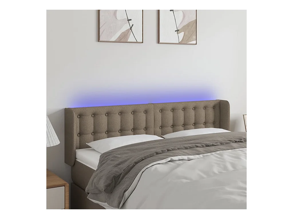 Mueble cabecero | Cabezal de cama | Cabecero con LED de tela gris taupe 147x16x78/88 cm