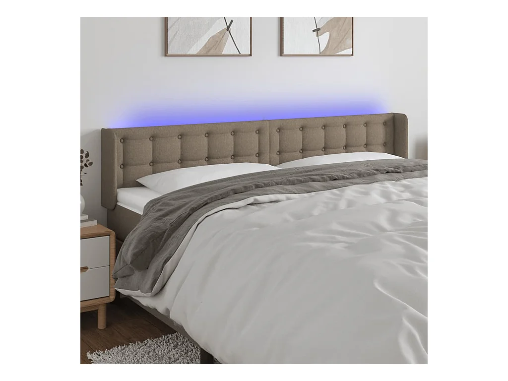 Mueble cabecero | Cabezal de cama | Cabecero con LED de tela gris taupe 183x16x78/88 cm