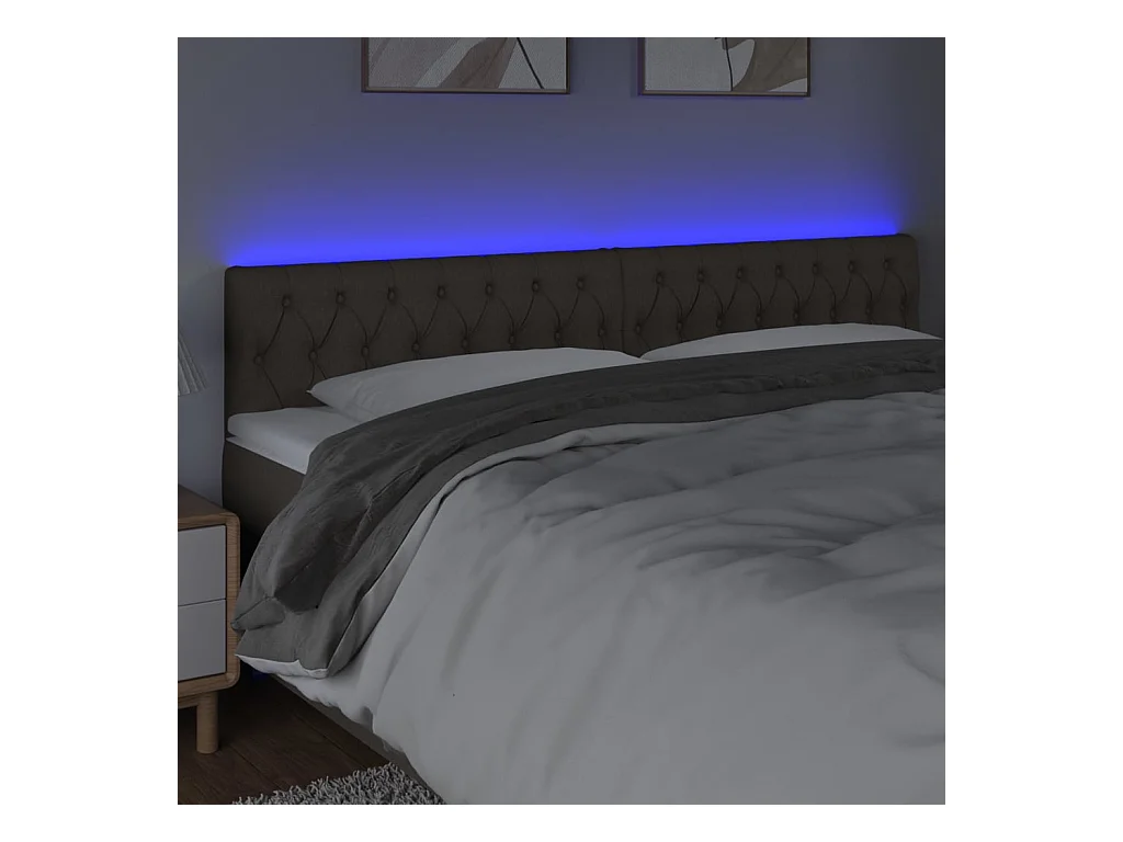 Mueble cabecero | Cabezal de cama | Cabecero con LED de tela gris taupe 200x5x78/88 cm