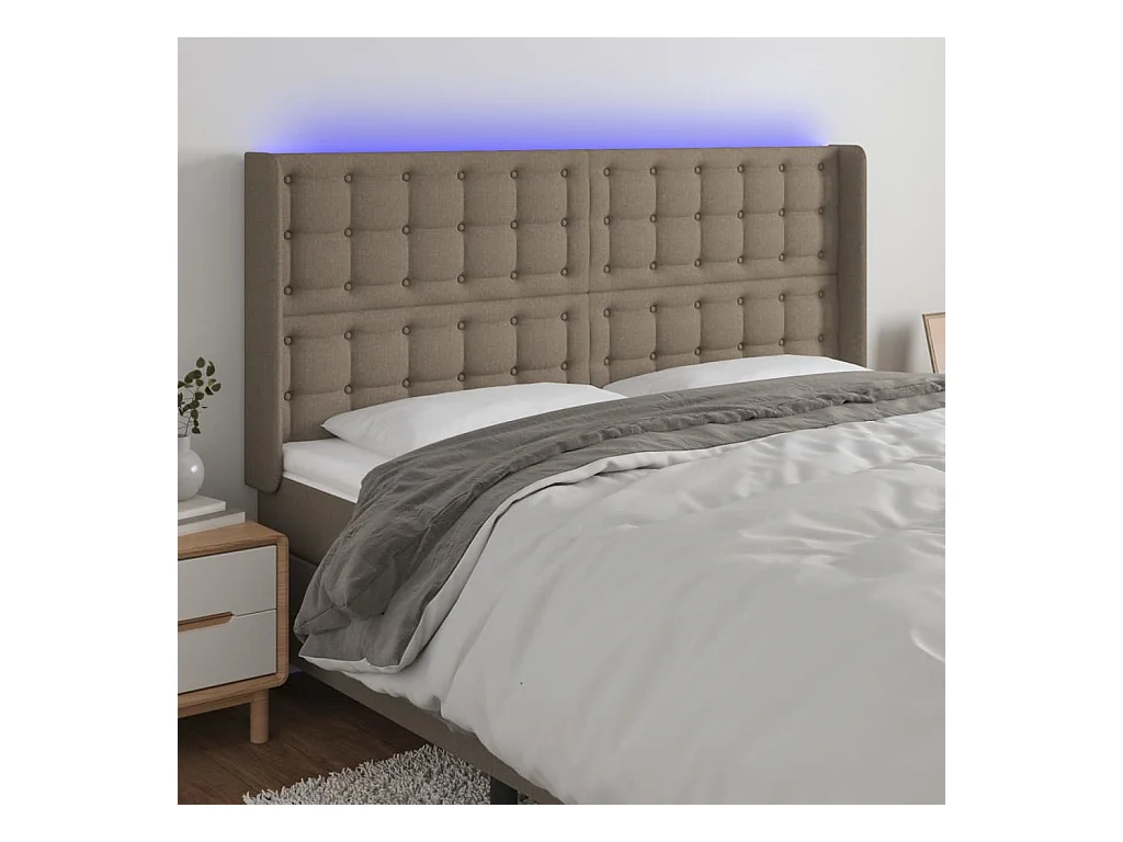 Mueble cabecero | Cabezal de cama | Cabecero con LED de tela gris taupe 183x16x118/128 cm