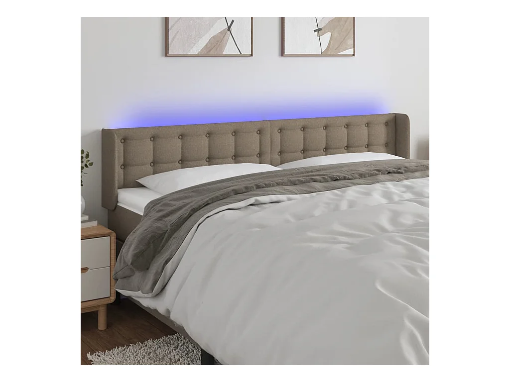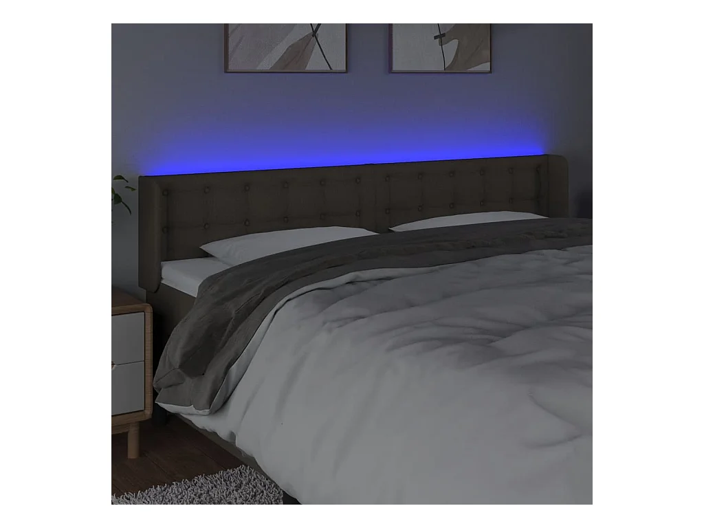 Mueble cabecero | Cabezal de cama | Cabecero con LED de tela gris taupe 203x16x78/88 cm