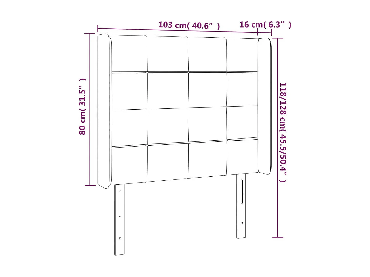 Cabecero | Cabezal de Cama | Mueble cabecero con orejas de tela marrón oscuro 103x16x118/128 cm