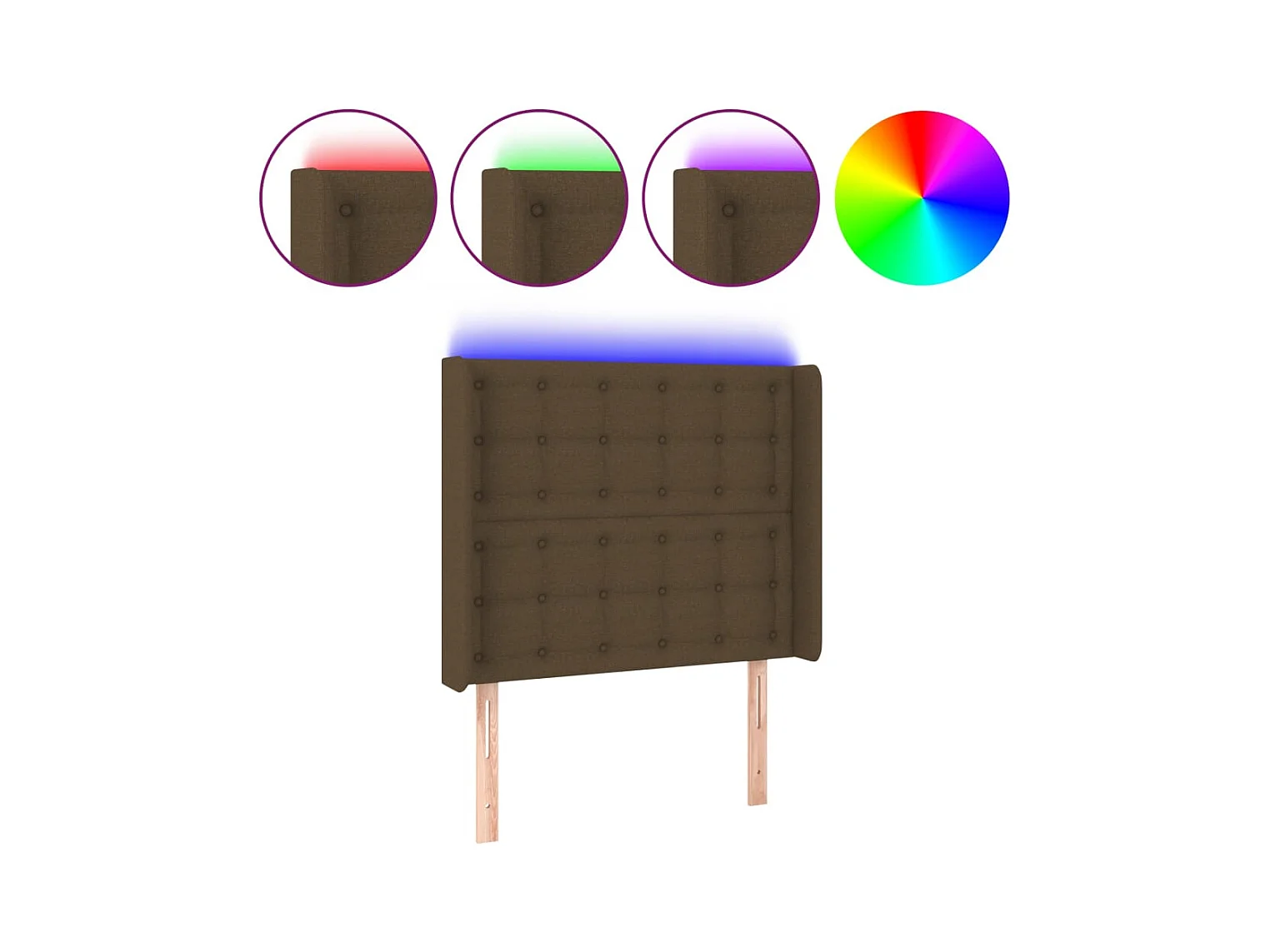 Mueble cabecero | Cabezal de cama | Cabecero con LED de tela marrón oscuro 93x16x118/128 cm