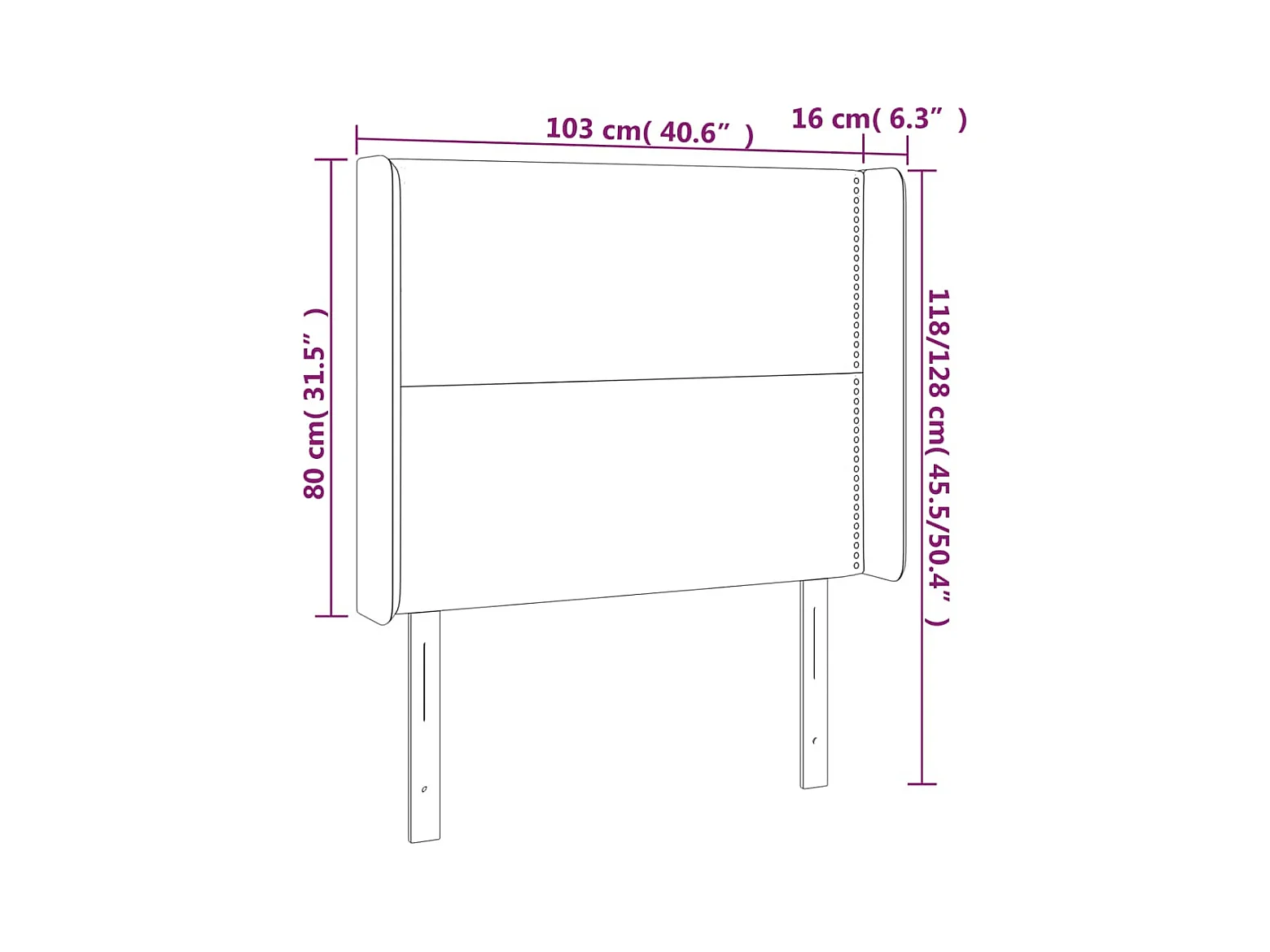 Cabecero | Cabezal de Cama | Mueble cabecero con orejas de tela marrón oscuro 103x16x118/128 cm