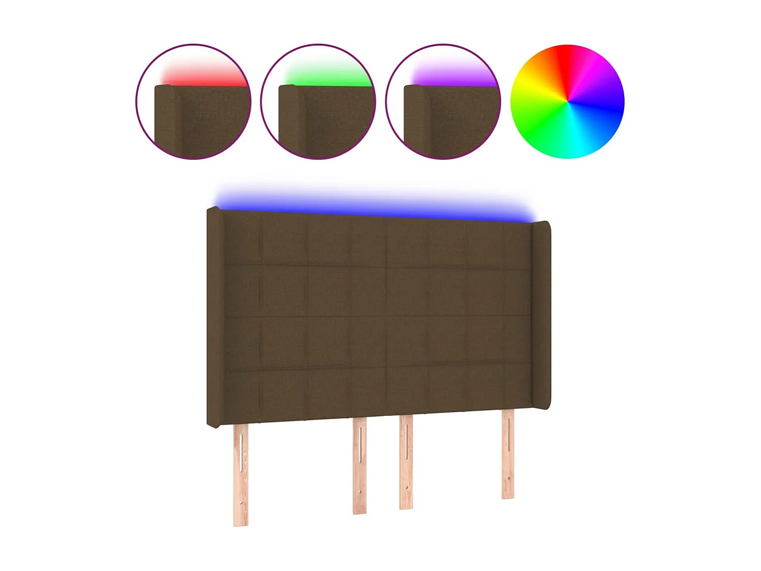 Mueble cabecero | Cabezal de cama | Cabecero con LED de tela marrón oscuro 147x16x118/128 cm